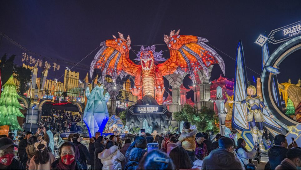 ▲“自贡・中华彩灯大世界”英雄联盟主题彩灯 图片提供:景区提供