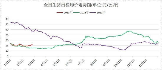 2月生猪出栏均价报14.83元/公斤,较1月均价15.49元/公斤,下跌0.66元/公斤,环比下跌4.26%,较去年同期上涨12.26%。目前消费市场缓慢复苏,在发改委的收储政策性托底以及下游屠宰企业加大冻猪肉入库的共同影响下,市场信心得到提振,虽然进入消费淡季但生猪价格不淡,2月生猪出栏均价呈现触底反弹上涨走势,期货价格亦跟随现货走势呈现同步反弹上涨走势。