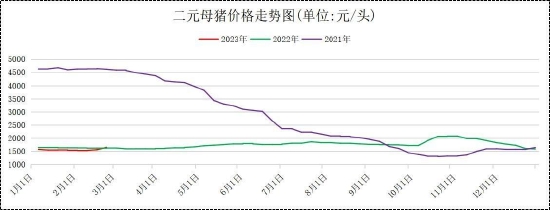 2月二元母猪价格上半月缓慢筑底,下半月呈现小幅反弹上涨走势,当月其价格整体走势较仔猪价格走势偏弱。据钢联数据显示,截止2月24日,规模场50Kg体重二元母猪2月平均价格报1569.05元/头,较1月平均价格1553.29元/头上涨15.76元/头,环比上涨1.01%。