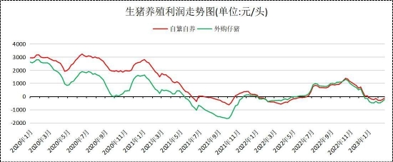 前期自繁自养的仔猪具有成本优势,导致今年以来自繁自养的亏损程度优于外购仔猪,随着猪粮比从2月中旬开始反弹上涨,养殖亏损得以改善,但外购仔猪养殖的改善程度优于自繁自养的改善程度。截止2月24日,自繁自养月均亏损245.68元/头,较1月增加66.31元/头,亏损幅度环比上涨36.93%,外购仔猪月均亏损398.77元/头,较1月减少41.47元/头,亏损幅度环比下降9.42%。
